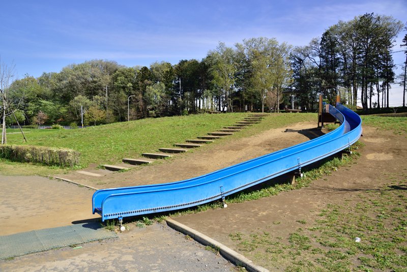 ピオニウォーク東松山に隣接する便利な立地の公園で、ローラー滑り台、ターザンロープ、クライミング遊具、ロッキング遊具など充実した設備が魅力です。青色で統一された遊具がスタイリッシュで、大きな芝生広場では子供たちがのびのびと遊べます。ショッピングセンターが隣接しているため、買い物の前後に立ち寄りやすく、授乳室やおむつ替えもピオニウォークを利用できるため小さな子供連れでも安心です。10台の無料駐車場があり、24時間開放されているため、時間を気にせず利用できる家族に優しい公園です。