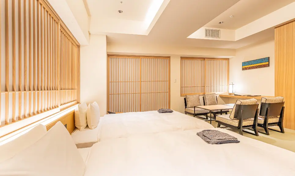 ドーミーインの和風プレミアムブランド「御宿 野乃」の浅草店。天然温泉の大浴場とサウナを完備し、旅の疲れを癒せます。小学生以下添い寝無料で、名物の夜鳴きそばサービス(無料)も家族連れに人気。館内は畳敷きで靴を脱いでくつろげる和のおもてなしが特徴です。
