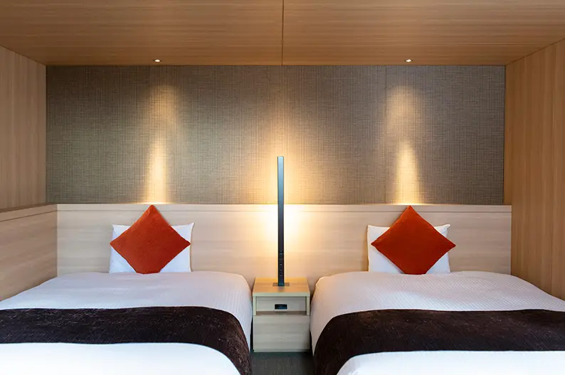 天然温泉の大浴場があり、移動の疲れを家族でリセットしやすいホテル。館内は清潔感があり、連泊でも過ごしやすい設備が整っています。駅から近く、周辺も整備された街並みなのでベビーカー移動もしやすいのが安心。駐車場は館内になく提携駐車場利用のため、車移動の方は事前に場所と導線を確認しておくとスムーズです。