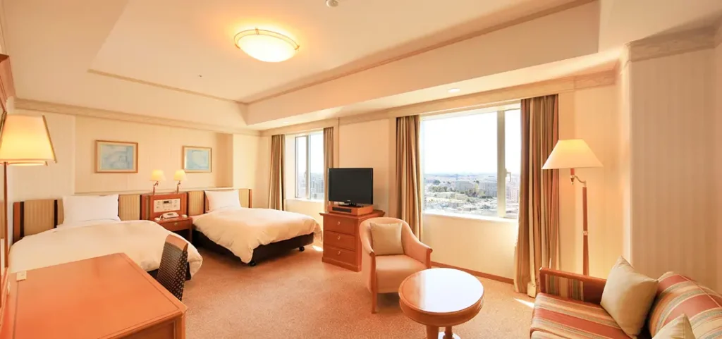 無料の平面駐車場(60台)を備え、車移動の子連れにとって計画が立てやすいホテル。客室設備も充実しており、滞在中に”部屋で整える時間”を取りやすいのが魅力です。柏駅周辺からは離れますが、車で動く旅行や、周辺エリアでの用事と組み合わせると使いやすい一軒。満車時は近隣コインPになる可能性があるため、繁忙期は早め到着が安心です。
