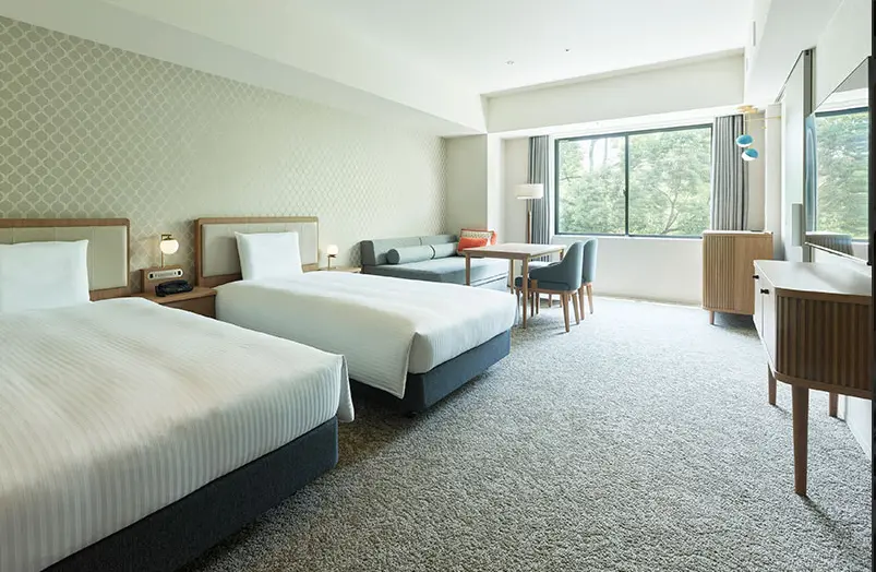 落ち着いた滞在をしやすい雰囲気で、ラウンジやカフェなど”ホテル内で休憩できる場”があるのが子連れに便利。敷地内禁煙の方針もあり、におい面が気になる方にも向きます。柏駅周辺からは距離がありますが、バス移動を前提に「周辺で予定がある」家族旅行には組み込みやすい選択肢。駐車は近隣駐車場案内型なので車移動は事前確認推奨です。