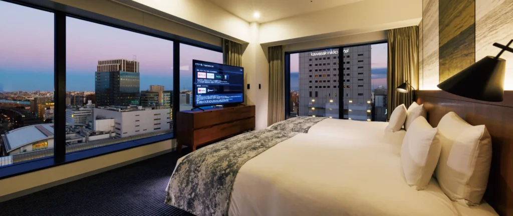 川崎駅中央東口から徒歩わずか1分の好立地に位置するシティホテル。オークラ ニッコー ホテルズの品質とサービスで、ワンランク上の滞在を提供します。レストランやバーラウンジも充実し、特別な記念日や家族での滞在にも最適です。駅直結の利便性と充実した施設で、小さなお子様連れでも安心して宿泊できる環境が整っています。ホテル周辺には商業施設も多く、お買い物や食事にも便利です。