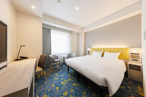 JR立川駅南口から徒歩7分、コストパフォーマンスに優れたホテルです。小学生の添い寝が無料(ベッド1台につき1名)という家計に優しい設定が魅力で、デラックスツインルームは35㎡と広く、ベッド幅120cmで子連れファミリーにゆとりがあります。客室の一部には玄関スペースがあり、スーツケースを広げても余裕があるのが嬉しいポイント。洗濯機も館内にあり、長期滞在や連泊にも便利です。「とにかく宿泊費を抑えたい」という小学生連れの家族に最適なホテルです。