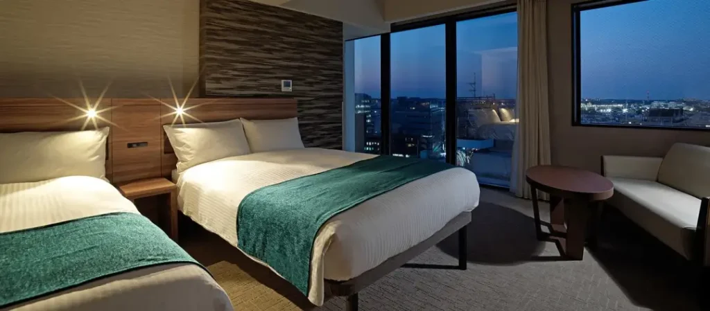 | 特徴・おすすめポイント | ・全室52㎡以上の広々客室、最大4名宿泊可 ・子連れウェルカム、ベビーベッド貸出あり ・屋上インフィニティプールと温泉施設 ・無料ラウンジでドリンクサービス ・小学生以下添い寝無料 ・グリーンスプリングス内で買い物・食事も便利 |