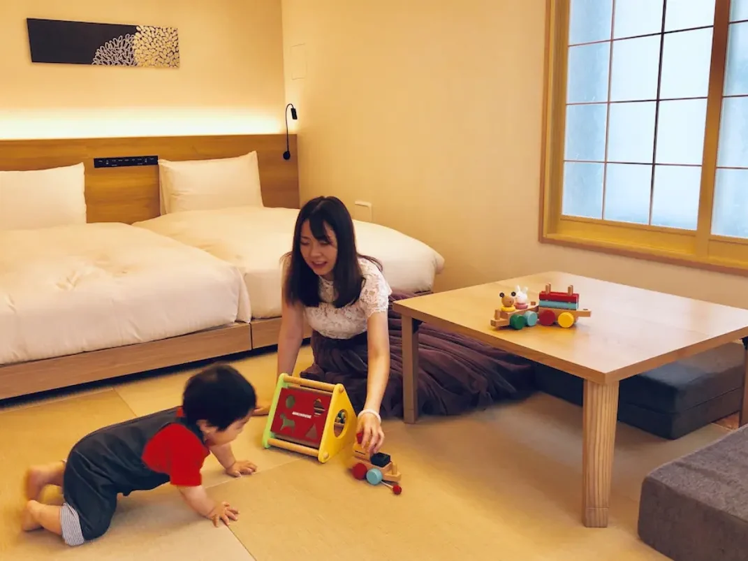 ・お子様用アメニティ充実(おむつ替えセット・絵本・プレイマット貸出)