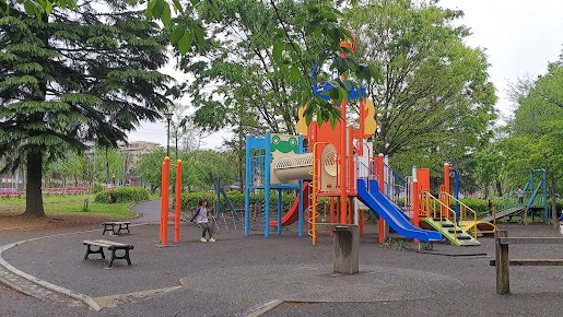 | 特徴・おすすめポイント | ・人気のロングすべり台(ローラー式) ・砂場、ブランコ、鉄棒、健康遊具完備 ・広い芝生スペースでボール遊び可能 ・緩やかな傾斜地形を活かした公園設計 ・木陰が多く夏でも快適 ・駅から徒歩5分の好アクセス ・ベンチ・水飲み場あり |