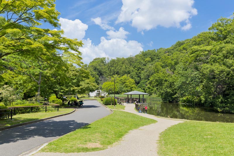 1973年開園の歴史ある自然公園で、横浜市港南区と磯子区にまたがる約23万平方メートル(東京ドーム約5個分)の広大な敷地が自慢です。園内には4つの遊具広場があり、複合遊具、ブランコ、ターザンロープなど多様な遊具が設置され、幼児から小学生まで思い切り遊べます。中央の大きな池を囲む散策路、雑木林、広々とした芝生広場、運動広場など自然豊かな環境が魅力で、春には桜の名所として花見客で賑わいます。横浜市電の保存車両展示もあり、歴史に触れることも可能。自然観察、ピクニック、自転車の練習など多目的に楽しめる、上大岡エリアを代表する総合公園です。