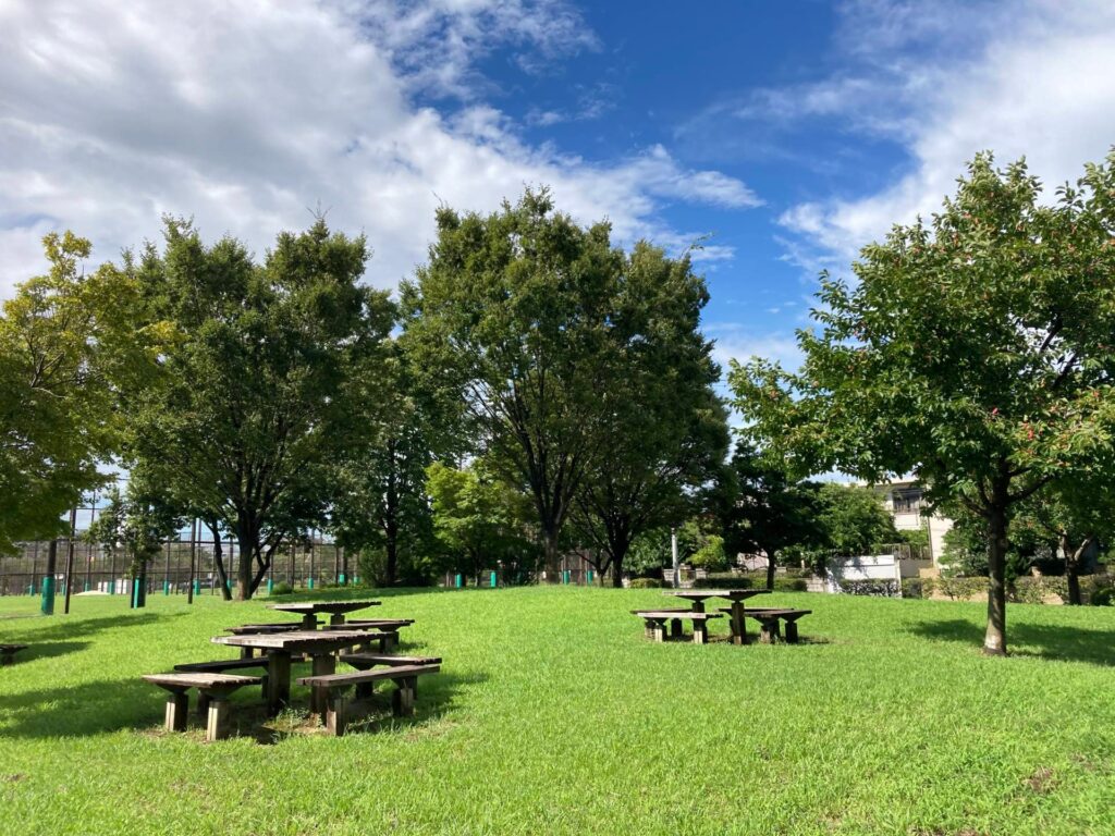 | 特徴・おすすめポイント | ・広大な芝生広場でボール遊び可能 ・野球場、テニスコート等スポーツ施設充実 ・春は桜の名所 ・行船公園(自然動物園)に隣接 ・防災施設も完備 ・駐車場が広く車でのアクセス便利 |