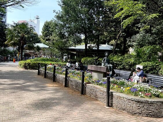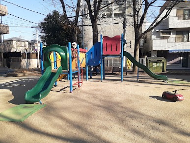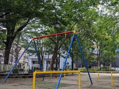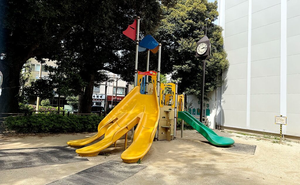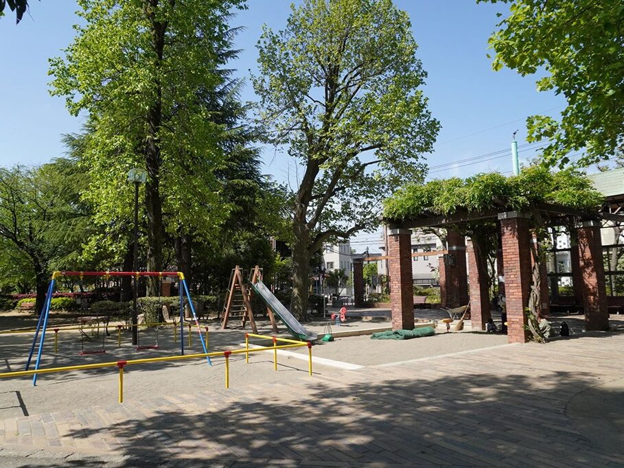 | 特徴・おすすめポイント | ・駅から徒歩5分の好立地 ・カラフルな複合遊具とV字型の橋が人気 ・4連ブランコと砂場あり ・ケヤキやスズカケの木陰で夏も快適 ・商店街が近く買い物ついでに利用可能 |