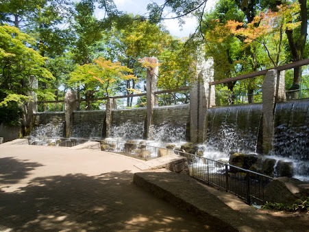 | 特徴・おすすめポイント | ・駅から徒歩1分の好アクセス ・大滝と池のある美しい水辺景観 ・蒸気機関車型遊具が人気 ・水遊び、デイキャンプ可能 ・バリアフリー対応で点字案内あり ・歴史的建造物(旧正門・守衛所)保存 ・防災機能完備 ・温水プール併設(有料) |