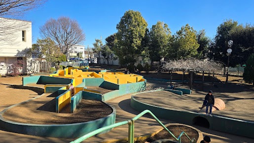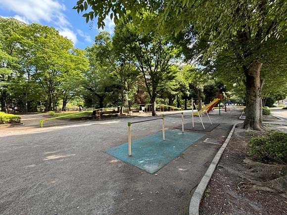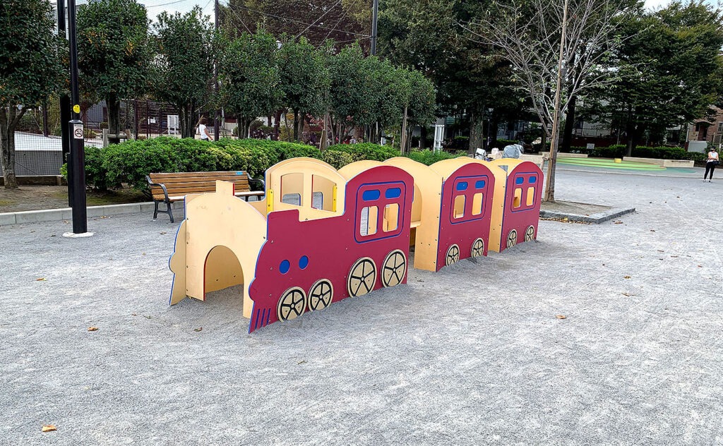 東急世田谷線の線路沿いに位置し、駅から徒歩1分という好立地の近隣公園です。令和元年度にリニューアルされ、複合遊具や砂場、幼児用ブランコなどが新設されました。世田谷線の電車を間近に見られるのが特徴で、電車好きの子どもに人気です。ケヤキの木陰が多く、ベンチも充実しているため、保護者も快適に過ごせます。球戯広場ではサッカーやキャッチボールも楽しめ、周辺では珍しいボール遊びができる公園として地域に親しまれています。