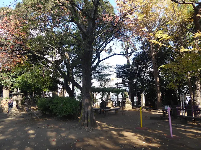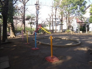 | 特徴・おすすめポイント | ・駅から徒歩1分の好立地 ・木陰あり ・遊具は滑り台と鉄棒のみ ・神社境内のため階段あり ・静かな環境 ・短時間の休憩や遊びに最適 |