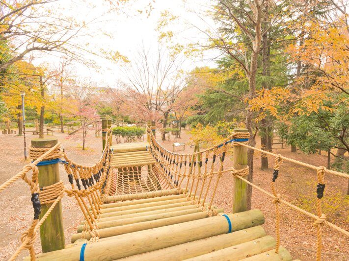 | 特徴・おすすめポイント | ・区内最大級の公園 ・40ポイントのフィールドアスレチック ・幼児向け遊具エリアあり ・じゃぶじゃぶ池で水遊び可能 ・木陰が多く夏でも快適 ・テニスコート、弓道場、アーチェリー場などスポーツ施設充実 |