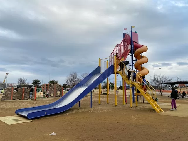 | 特徴・おすすめポイント | ・巨大すべり台「ジャンボスライダー」が人気 ・複合遊具、チューブスライダー、ネット遊具など多彩 ・児童用と幼児用に遊具エリアが分かれている ・広大な芝生広場でピクニックやボール遊びも可能 ・フクダ電子アリーナでのイベント時は特に賑わう ・総合スポーツ施設で一日楽しめる |
