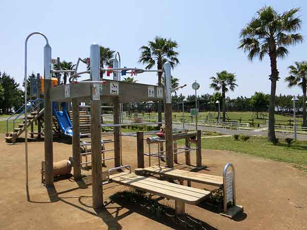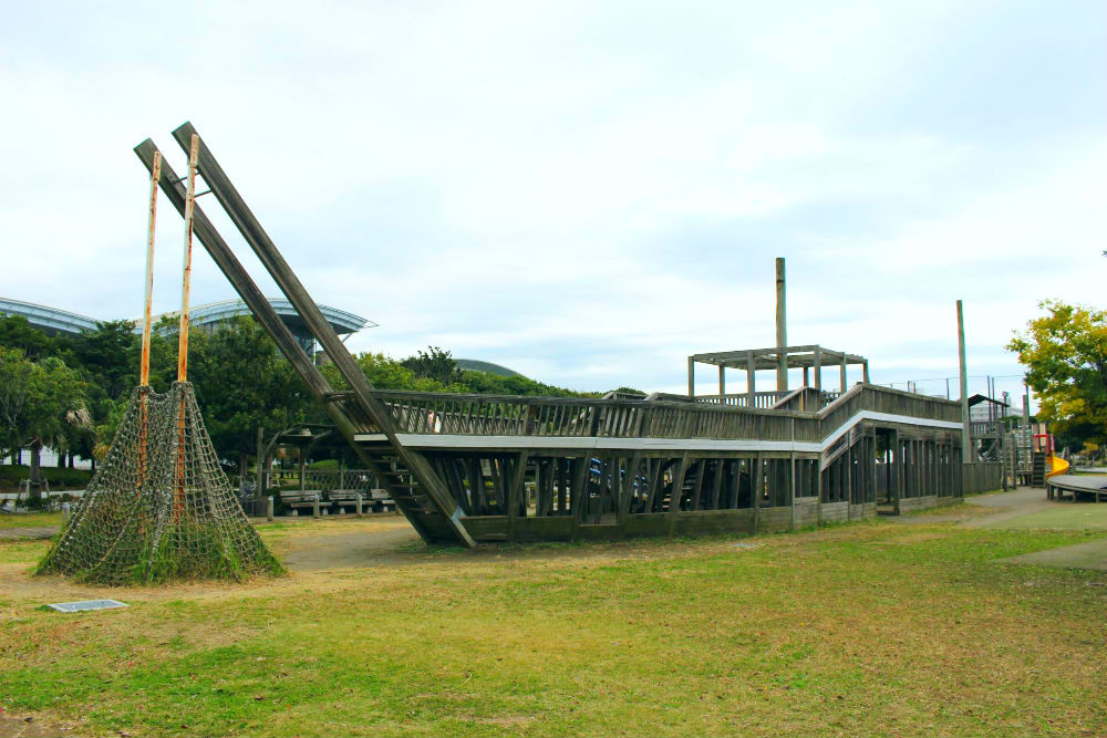 市内唯一の総合公園として、約18ヘクタールの広大な敷地に海が見えるニコニコ広場、展望パーゴラ、ピクニック広場、デイキャンプ場、ビオトープなどが整備されています。自然を実感できる緑豊かな環境で、バーベキューも楽しめる貴重なスポットです。球技場やウォーキングコースもあり、家族でのんびり過ごすのに最適です。3.5万平方メートルの芝生広場は開放感抜群で、木チップ園路で四季を感じる散策も楽しめます。管理棟には授乳室も完備され、小さなお子様連れでも安心です。
