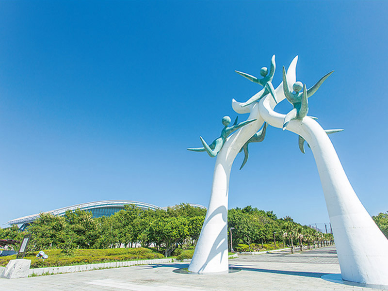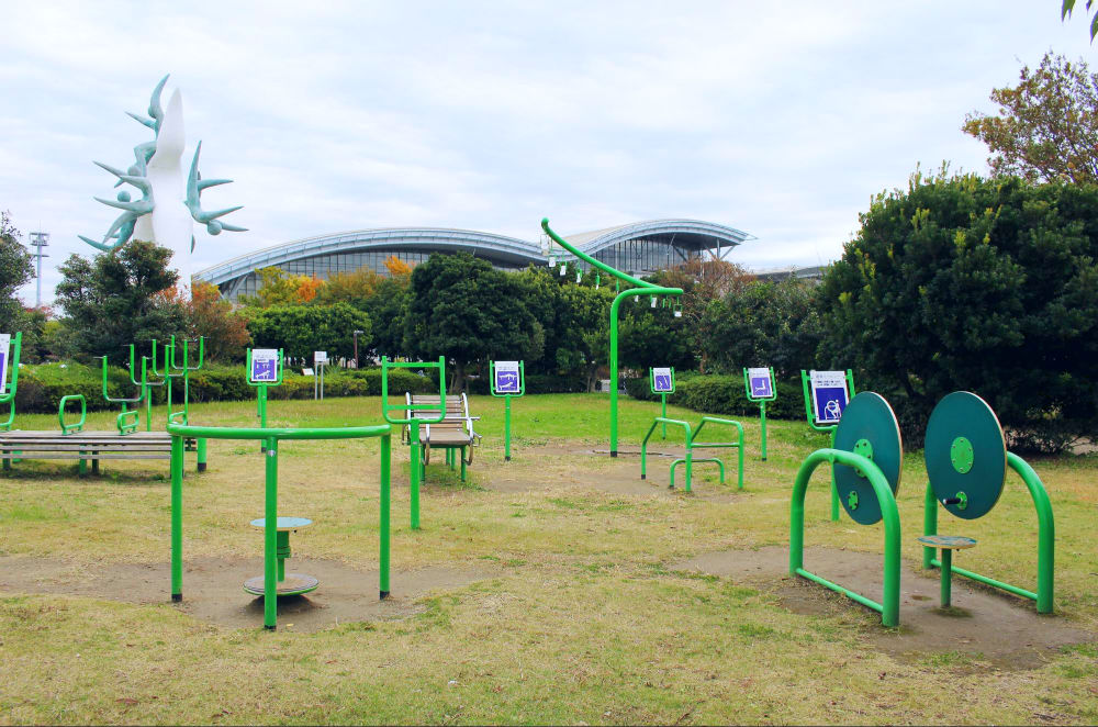 市内最大規模の総合スポーツ施設で、総合体育館(バルドラール浦安アリーナ)、屋内水泳プール、陸上競技場、野球場、テニスコートなどを備えた約18ヘクタールの広大な公園です。岡本太郎デザインのモニュメントがシンボルとなっており、芝生広場や大型遊具もあります。スポーツ愛好家から子連れファミリーまで幅広く利用でき、舞浜駅から徒歩圏内でアクセスも良好です。管理棟には授乳・おむつ交換スペースを完備し、小さなお子さん連れでも安心して利用できます。