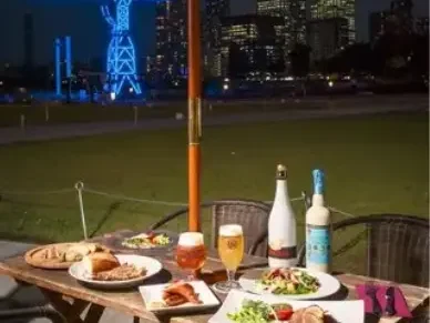 東京湾を眺めながらシカゴピザとクラフトビールが楽しめる開放的なレストランです。チーズと具材たっぷりのディープピザは圧巻のボリュームで、家族でシェアするのにぴったり。黒毛和牛のグリル料理も充実しており、肉好きも満足。テラス席は最大50席あり、夜景も楽しめます。広い店内は子連れでも最後までゆっくり過ごせる雰囲気です。